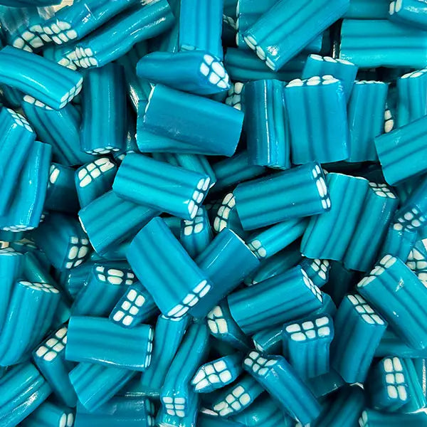 Ingrédients : Sirop de glucose-fructose, sucre, amidon, farine de blé (gluten), sirop de sucre inverti, eau, acidifiants (E330), amidon de pomme de terre, maltodextrine, humectant (E422), correcteur d'acidité (E332), graisse végétale (palme), gélatine de bœuf halal, arôme artificiel, colorant (E133), agents d'enrobage (huile végétale: palme), émulsifiant (E322).