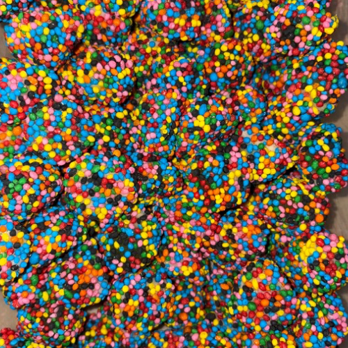 Ingrédients : Sucre, sirop de glucose, eau, farine de riz, dextrose, gélatine enrobée Halal, acidifiants : E296, R350ii, sirop de sucre inverti, gélifiant : E440, acidifiant : E330, arômes, agent d'enrobage : E414, colorants : E102, E122, E129, E133, E153.