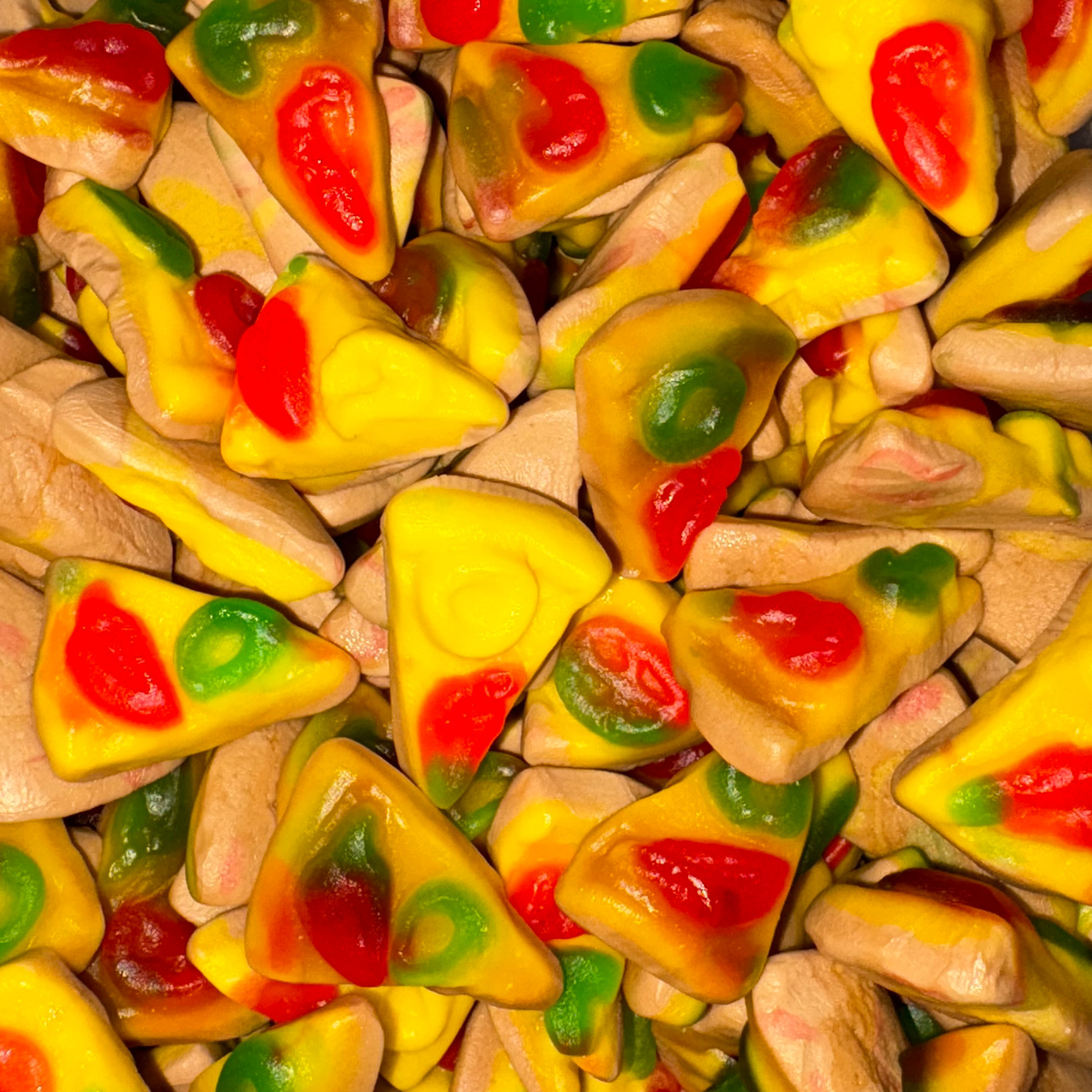 Ingrédients : Sirop de glucose, eau, sucre, gélatine de bœuf, amidon modifié de pomme de terre, cidifiants : E330, E170, agents d'enrobage : huile végétale (palme), E901, E903, arôme, colorants : E150c, E102, E129, E133. Sans gluten.